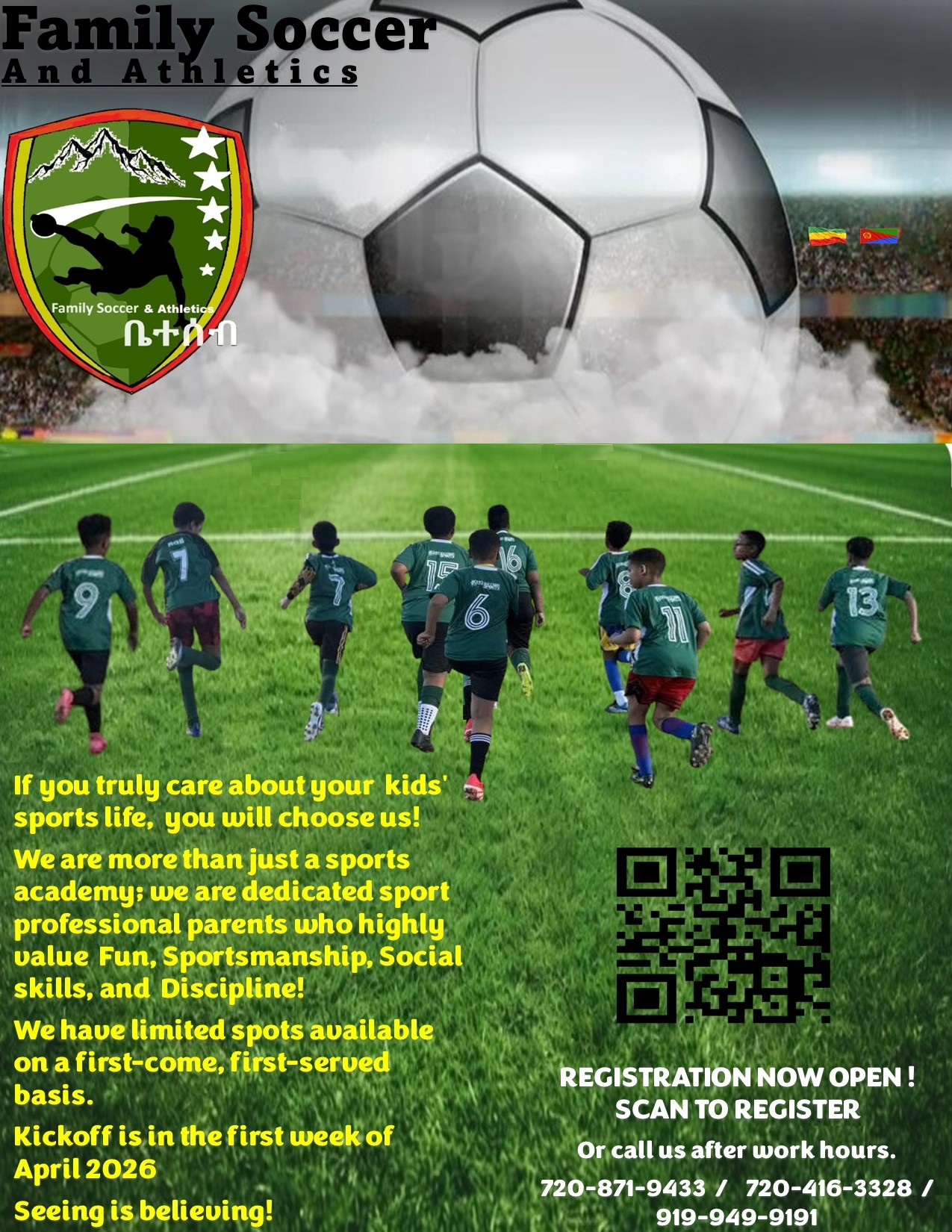 Join Our Family Soccer and Athletics Program. We have limited spots available on a first-come, first-served basis.